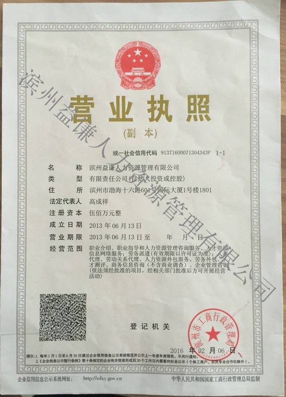 濱州益謙人力資源管理有限公司是經(jīng)工商行政管理機(jī)關(guān)依法批準(zhǔn)設(shè)立,并由人力資源和社會(huì)保障局審驗(yàn),取得《勞務(wù)派遣經(jīng)營(yíng)許可證》和《人力資源服務(wù)許可證》,現(xiàn)注冊(cè)資本500萬(wàn)元,員工16人,其中取得人力資源師資格的員工6人,并配備專(zhuān)職財(cái)務(wù)和法務(wù)人員。成為更專(zhuān)注于人力中介 努力打造“招工、培訓(xùn)、安置、派遣、維權(quán)”一條龍服務(wù)模式,為眾多家企事業(yè)、機(jī)關(guān)單位派遣用工3000余人,是濱州市優(yōu)秀人力資源服務(wù)品牌。獲得了良好的口碑,積累了豐富的經(jīng)驗(yàn)。為...